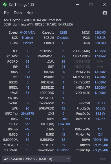 Deine Timings passen. Im EXPO-Profil (Version 1.1) von G.Skill werden nur die Spannungen für VDD, VDDQ und VPP sowie die Clock Cycle Time (zur Bestimmung der Taktzyklen und Frequenz) und die Timings tAA (CAS), tRCD, tRP, tRAS, tRC und tWR hinterlegt, wodurch lediglich die grundlegenden Parameter für eine stabile Speicherinitialisierung definiert sind.@Cody [G.SKILL] Wärst du so lieb und würdest mir einmal die korrekten expo values was voltage und timings und co. angeht von den kit zur Verfügung stellen das ich ein Abgleich wert haben?