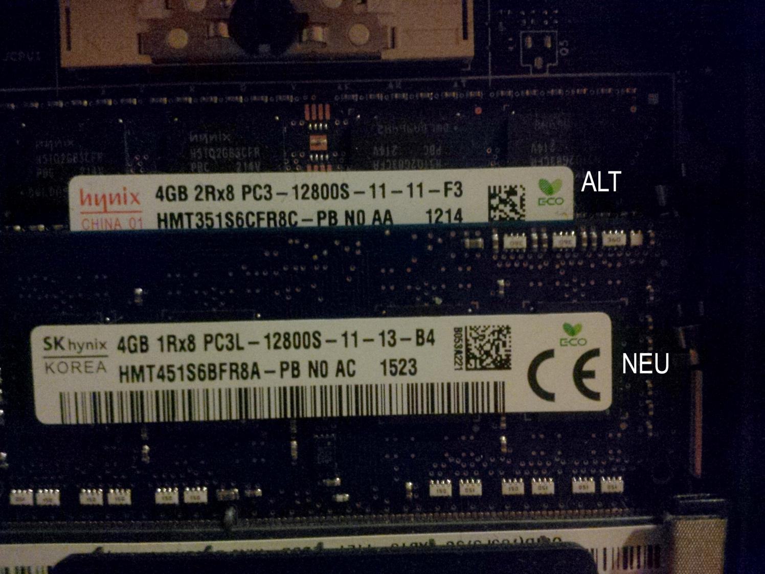 Nach dem Einbau werden im Reiter "System" 8GB angezeigt. Auch der Taskmanager zeigt 7,9GB verfügbaren Arbeitsspeicher. PC Wizard zeigt allerdings nur einen Riegel mit 4GB. Außerdem kommt es vor, dass wenn der Taskmanager und PC Wizard gleichzeitig geöffnet sind - und PC Wizard eine Diagnose durchführt - dies zu einem Bluescreen führt [PAGE_FAULT_IN_NONPAGED_AREA (pcwiz_x64.sys)]. Ob der Bluescreen auch in anderen Konstellationen auftritt kann ich noch nicht sagen, da ich das Gerät noch nicht so lange wieder in Betrieb habe.