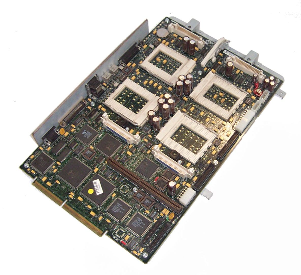Es handelt sich um ein Quad Sockel 8 Pentium Pro Mainboard mit Speichererweiterungsplantine ( sind aktuell 64MB EDO ECC Ram gesteckt). Es stammt wohl aus einem alten Acer Altos Server.