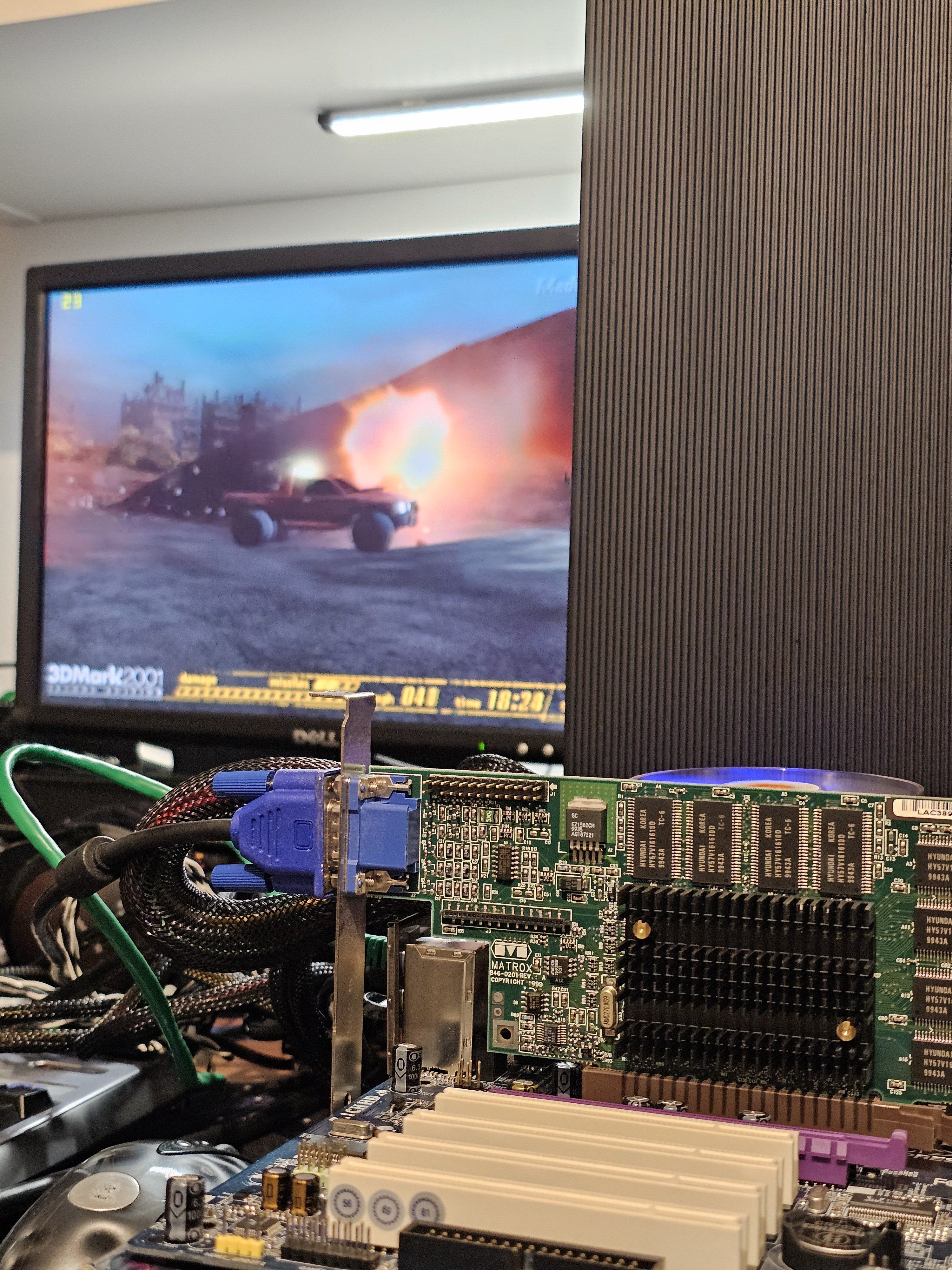 Ich muss tief in mich gehen aber um die Jahrtausendwende müsste ich nen P iii 750 MHz mit ner Vodoo 3 3000 im Einsatz gehabt haben. Ich habe wirklich Null Ahnung wo die G400 her kommt.