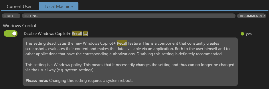 3. Laut Deskmodder ( https://www.deskmodder.de/blog/2024...lassen-einstellung-dafuer-wurde-hinzugefuegt/ ) läuft Recall nur auf Copilot+ PCs.