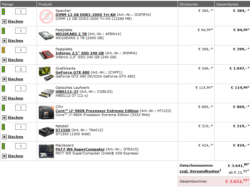 Für Anwendungsperformance allerdings hab ich dieses Jahr mal aufgerüstet. i7-870, 16GB Ram, 460GTX, 180GB SSD, ... Somit rennen mal die meisten Anwendungen (Fotobearbeitung) mal etwas flotter. Ginge vom Empfinden her sogar noch schneller, aber ich glaube einfach nicht, dass ein i7-980/990 überhaupt ein mehr an Performance bringen würde, da die meisten Anwendungen zunächst mal nur von wenigen Kernen und deren Takt profitieren. 6 anstatt 4 Kerne bringt da sicher kaum was, vom rein subjektiven Empfinden.