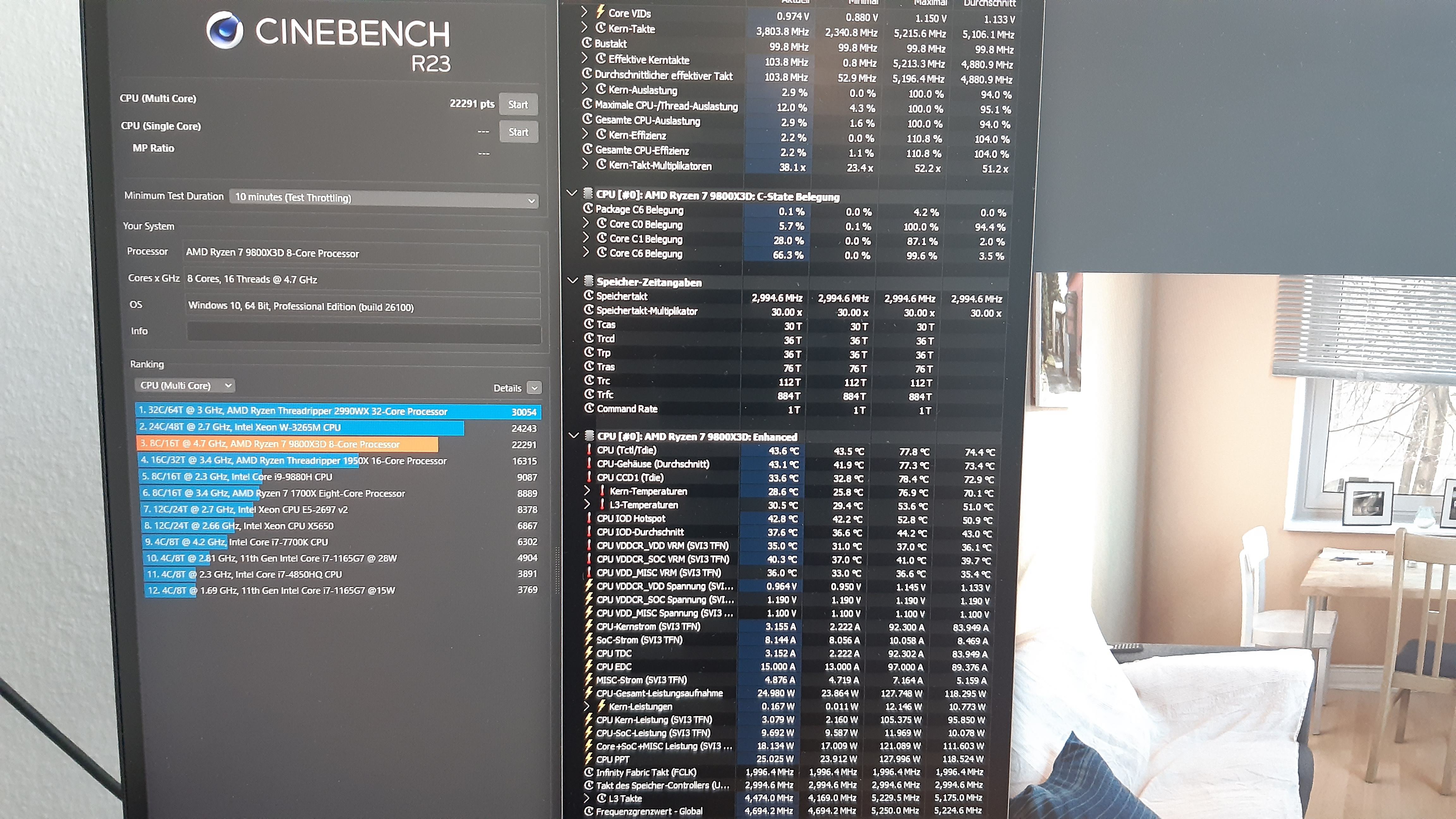 95°C im CB23R ist bei der 9800X3D zwar hoch, aber bei Cinebench-Last nicht völlig ungewöhnlich...