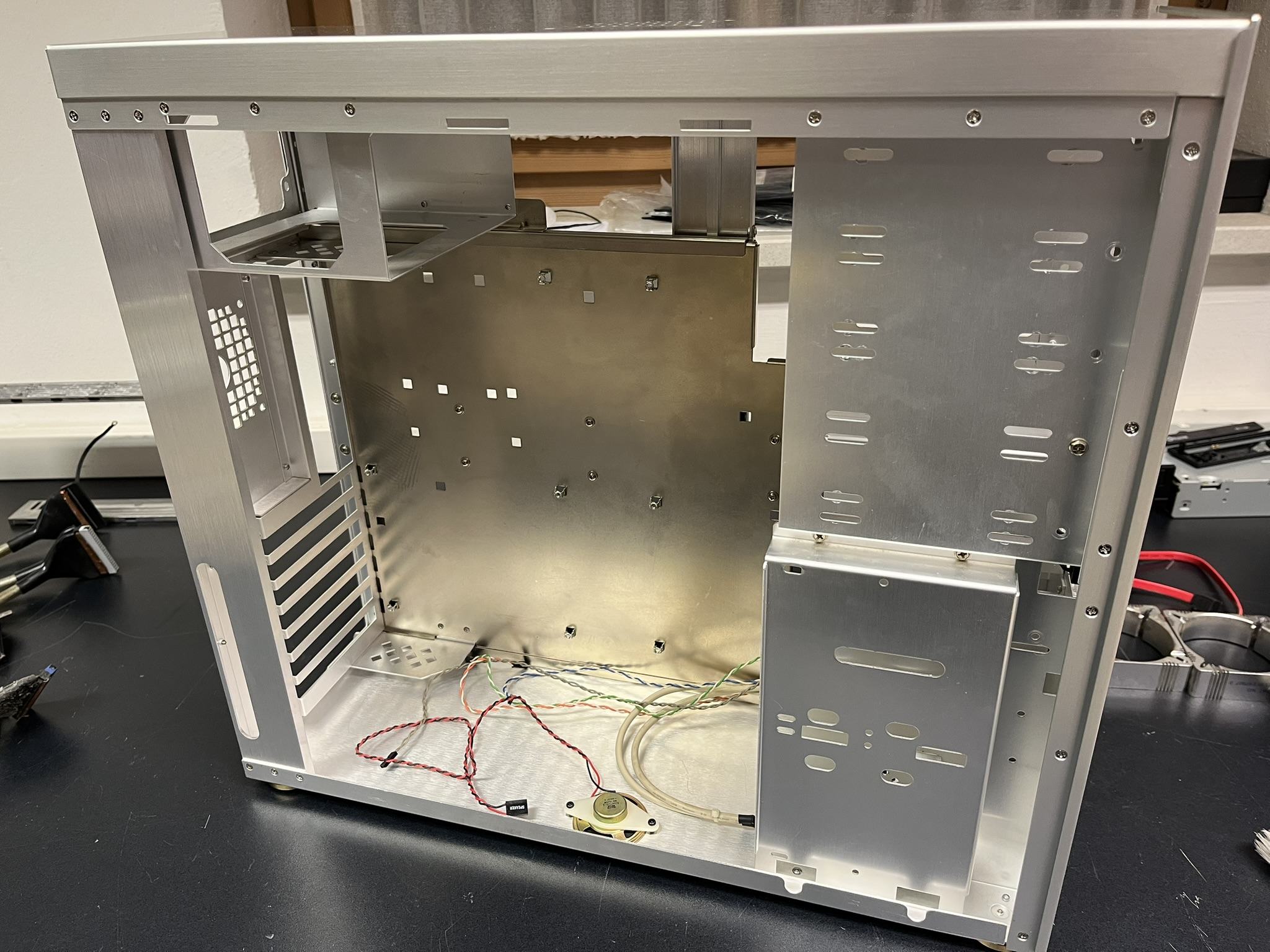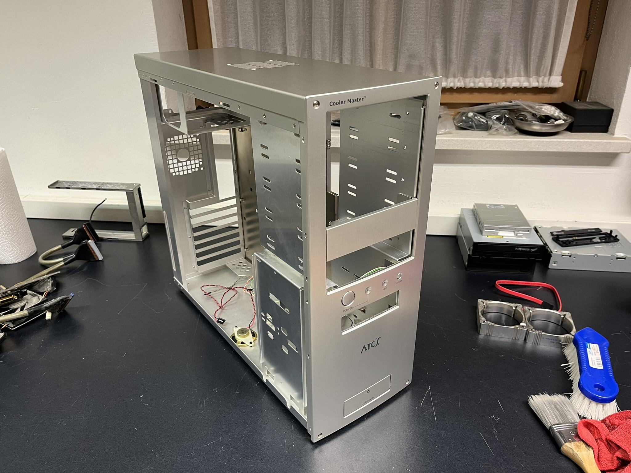 Hab mich grad dem heute eingetroffenen System noch kurz gewidmet, welches ich letztens schon erwähnte. Erstmal zerlegt und grundgereinigt. Zum Vergleich ein paar ausgebaute Komponenten, die noch den Ursprungszustand zeigen, in dem das System vorher war. Wieder ein schönes Stück für meine Gehäuse-Sammlung
