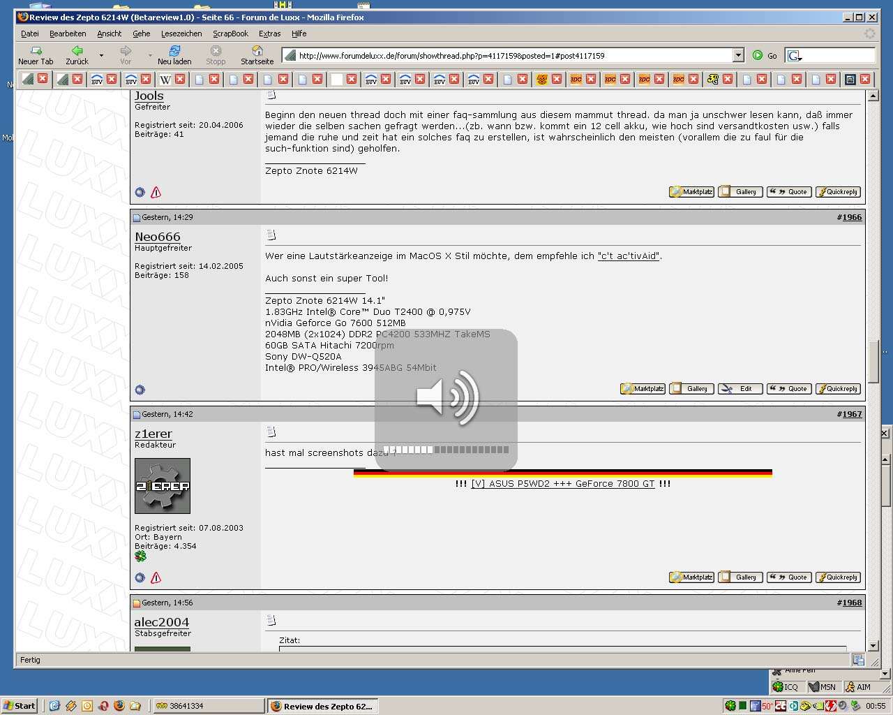 Hab nun auch seit ein paar Tagen mein 6214 (2ghz CPU , 1GB Ram , 100Gb 5400 , Sony no slot in , Wlan , non glare Display ) und bin seitdem eifrig am testen.
