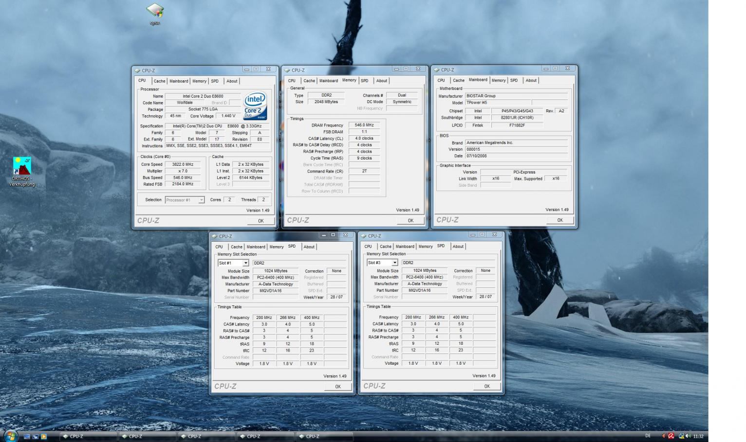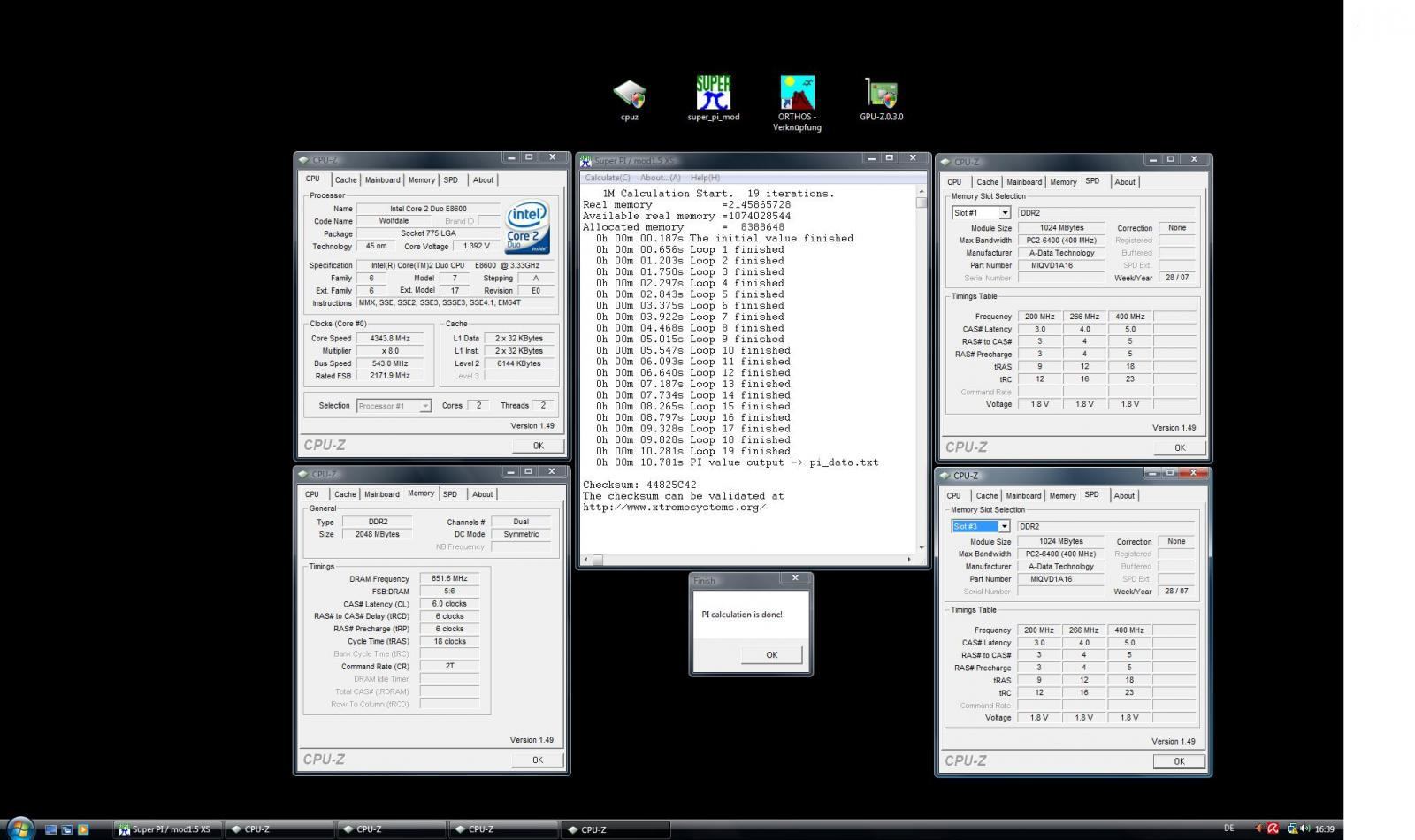 Hi, hab gerade leider keinen anderen Screen zur Hand, da muß ich noch suchen;), der hier ist noch auf HWbot mit 2,2V 32M mit Ballistix 1066, sonst hab ich meist bei hohem FSB noch Cl5 gefahren, zweiter Link sind 2,35 idle und 2,32 Last