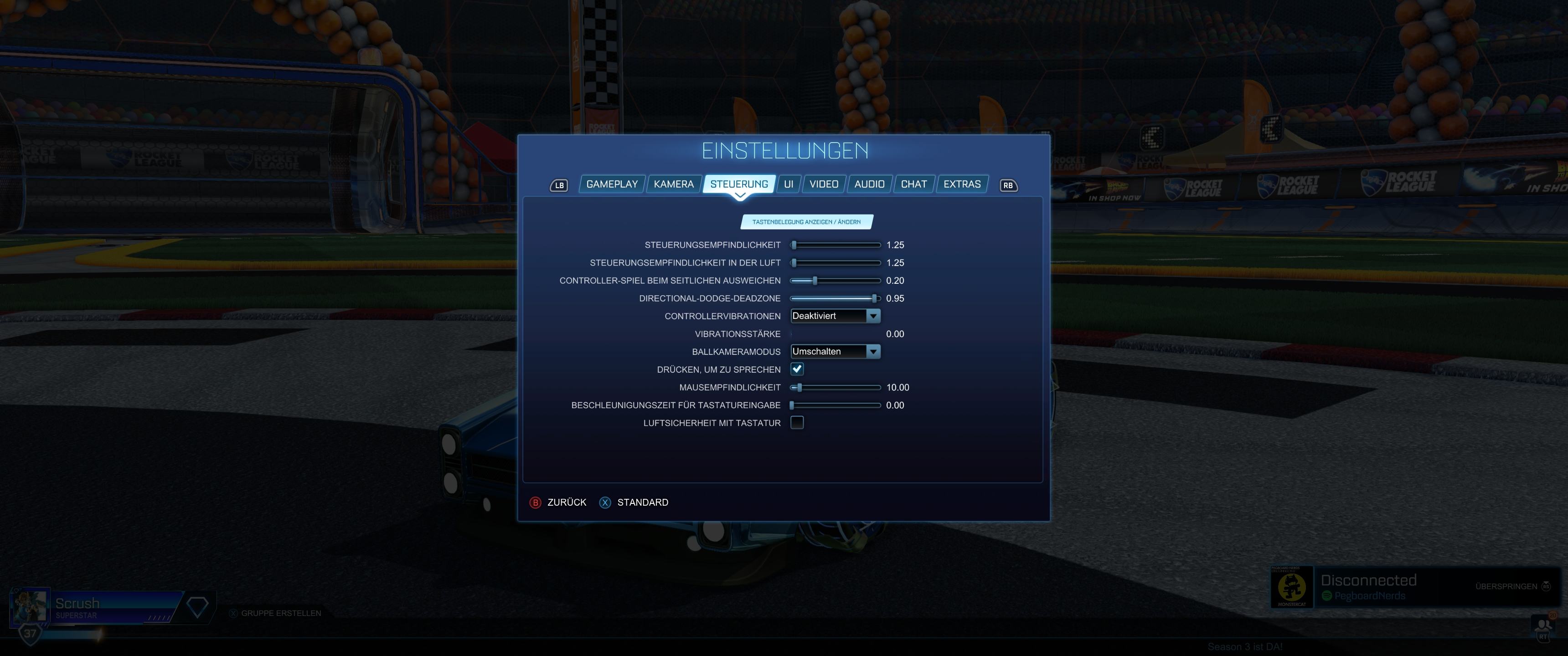 steuerung ja. die default steuerung ist müll. die meisten haben drift und air roll auf 1l/lb. da du mit der standard steuerung sonst nicht in der luft freesstylen und boosten kannst. das ist immens wichtig.