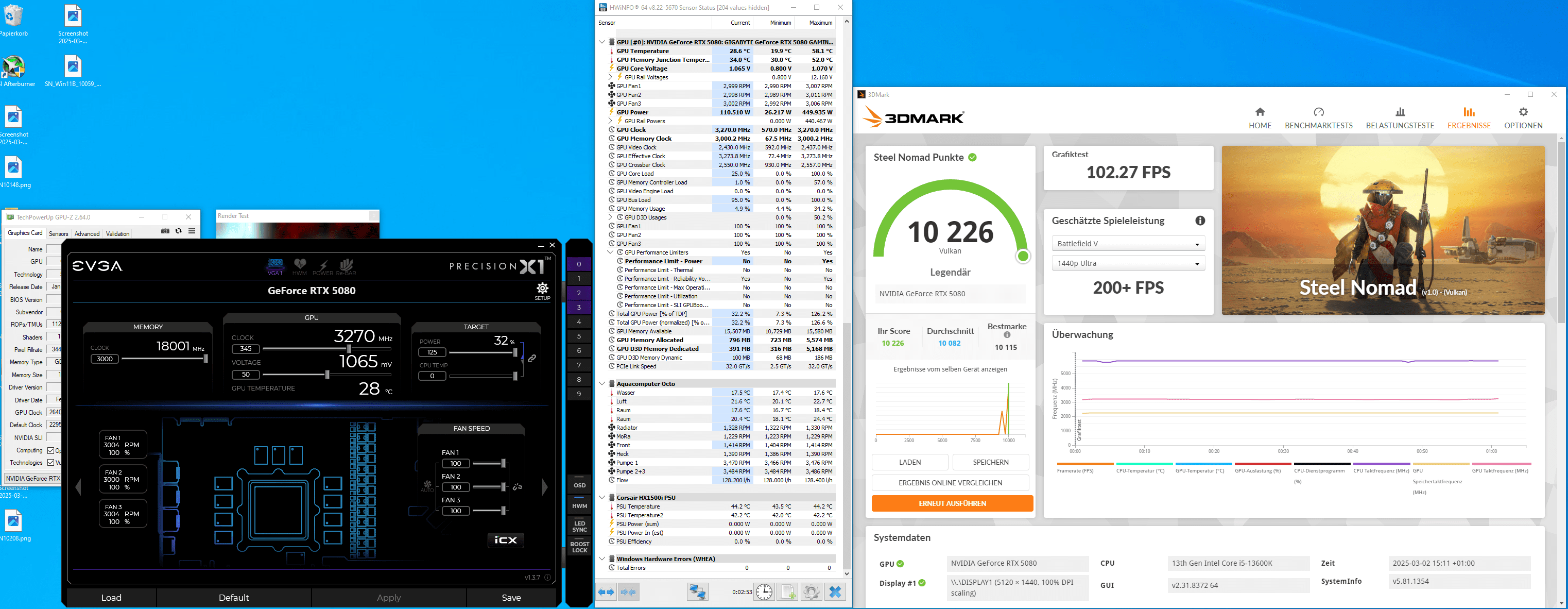 So, ich mach dann mal auf! 👋 Man liest ja einiges darüber, dass gerade bei der RTX 5080 noch Potenzial nach oben ist. Also habe ich mich heute selbst daran versucht und ein wenig herumgespielt. Setup: Grafikkarte: ASUS Astral 5080 OC Benchmark: 3DMark Steel Nomad OC-Tool: ASUS GPU Tweak III...