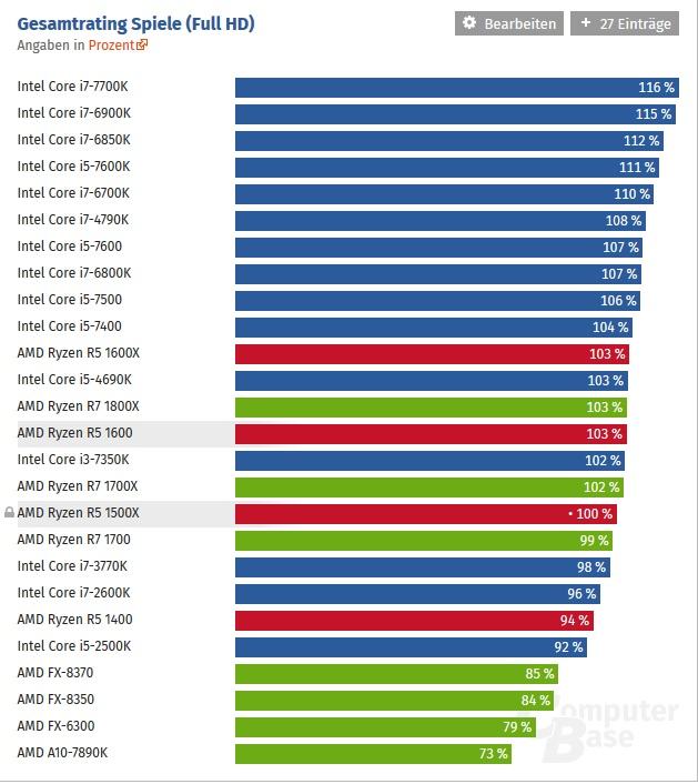 Auf den Bildern habe ich den 1500x mit 100% Makiert, dann Sieht man die anderen CPU´s schön mit den anderen Werten im vergleich.