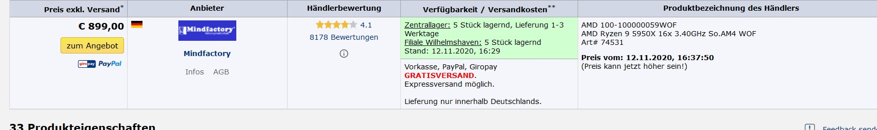 bei Mindfactory scheinen 5 pieces von den 5950x für kurze Zeit lagernd gewesen zu sein....!?