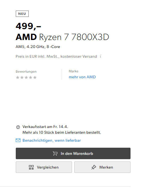 Ärgerlich. Galaxus springt jetzt auf den gleichen Zug auf wie andere bei den GRAKA Engpässen.Als ich das geschrieben hatte, war der Preis noch 499€