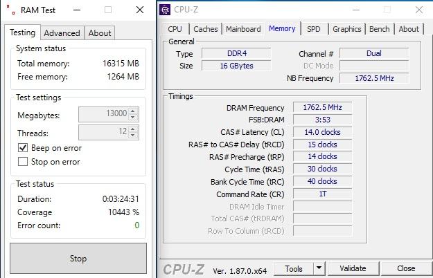 Heute Nacht habe ich das mit noch weniger SOC durchlaufen lassen, wieder Freeze nach Beendigung des Tests. Konnte aber noch ohne Probleme cpu-z öffnen und screenshot machen - war dann nach dem Gang in die Küche bisschen verwundert, dass schon wieder nichts geht.