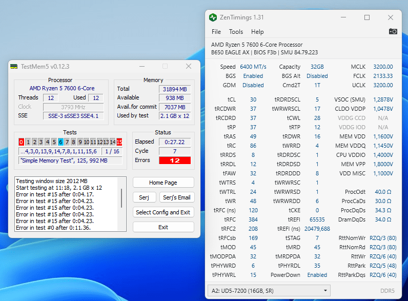 - Corsair Vengeance 32 GB 7200C34 @6400C30