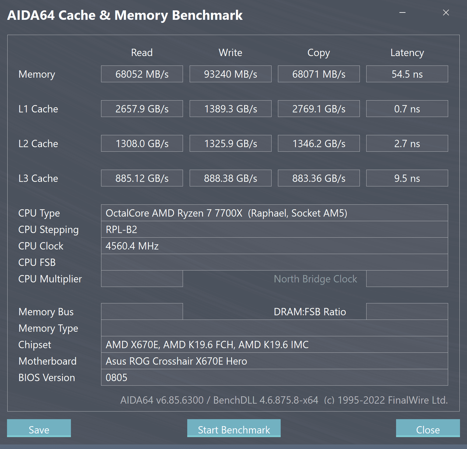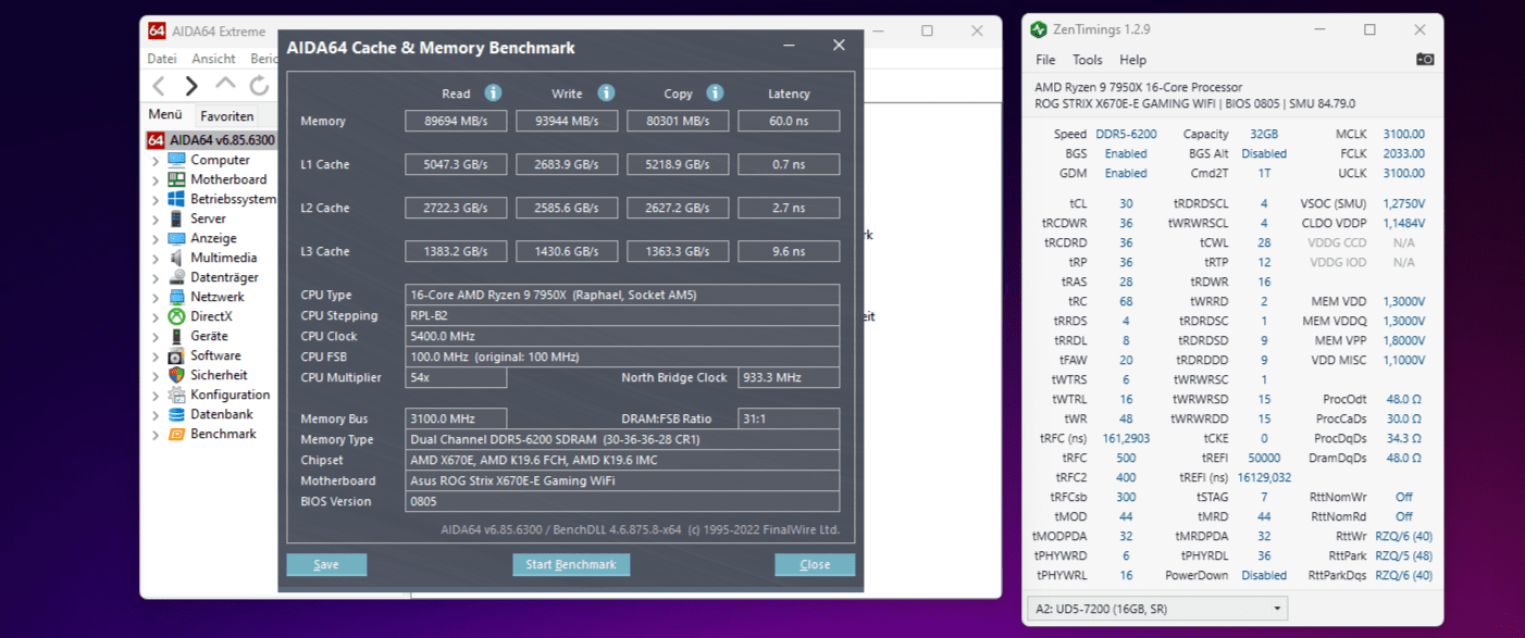 Edit: Offenbar macht der FCLK Probleme. Aida64 hat beim Memtest Fehler angezeigt, bei 2.000 MHz nicht. Leider reduziert dies die Leserate weiter auf ca. 6,1 Gb/Sek. Schade, dass hier bislang niemand einen 7600er mit DDR5 gebencht hat (mit Aida64).