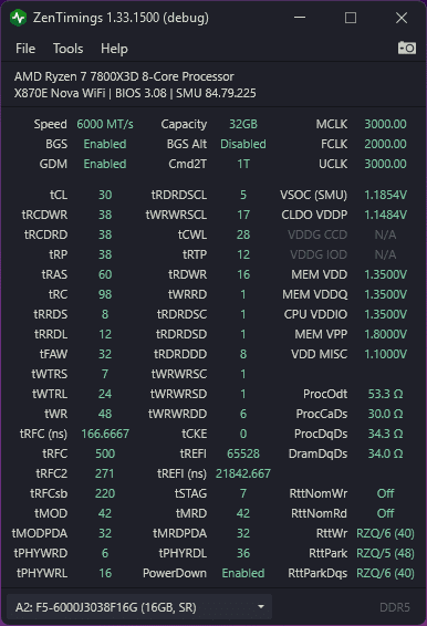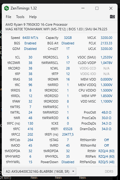 Hallo, können Sie Ihre 6400-Einstellungen teilen, die bei niedrigen Spannungen stabil funktionieren? Ich denke, unsere CPU und unser RAM sind gleich. Unser einziger Unterschied sind unsere MSI-Motherboards. Dein x670, mein b650.