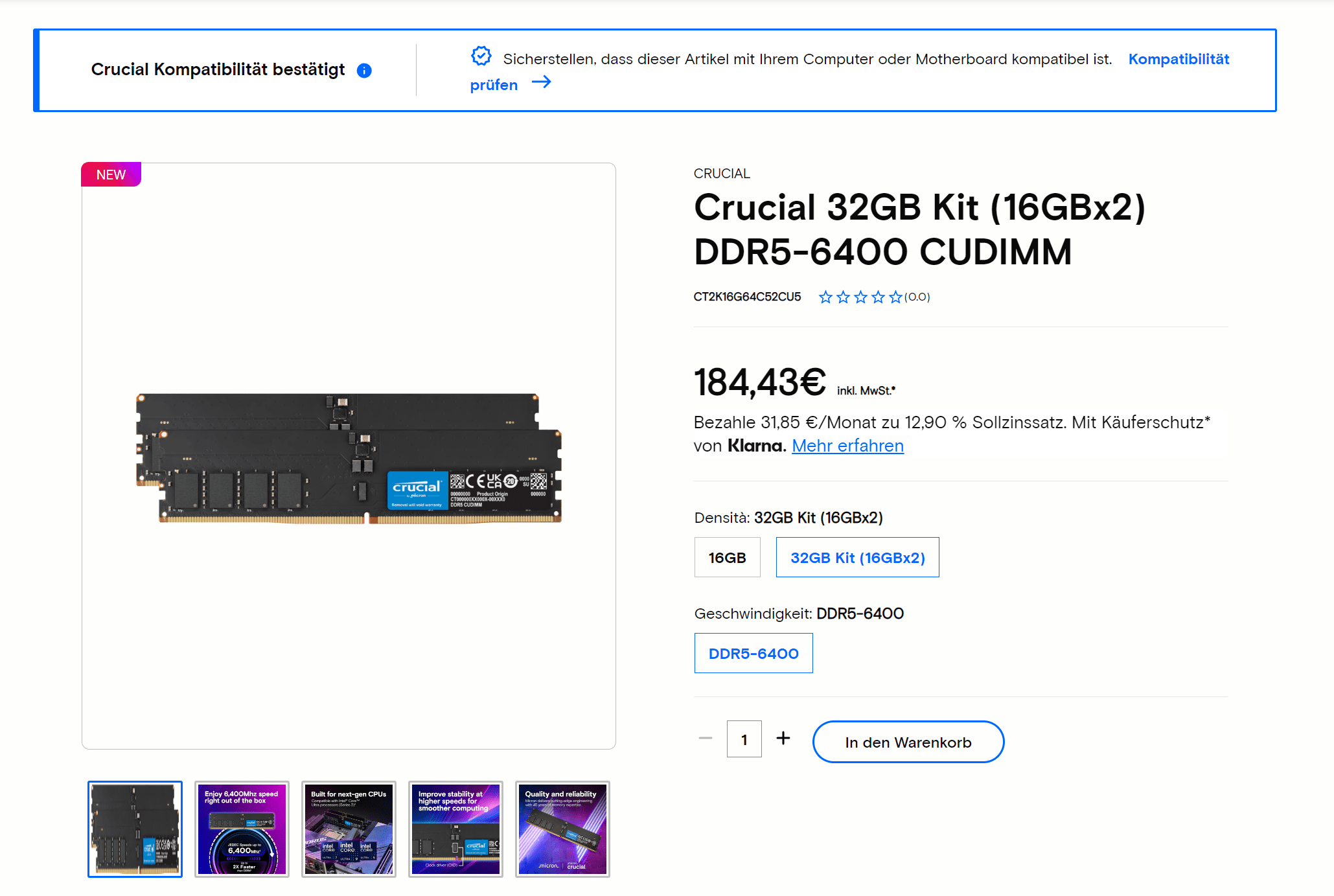 Ich habe gerade das Crucial DDR5-6400 CUDIMM 32 GB 16 GB x 2 Kit bestellt. Werde es auf AMD X870E mit 9000 Series CPU testen.