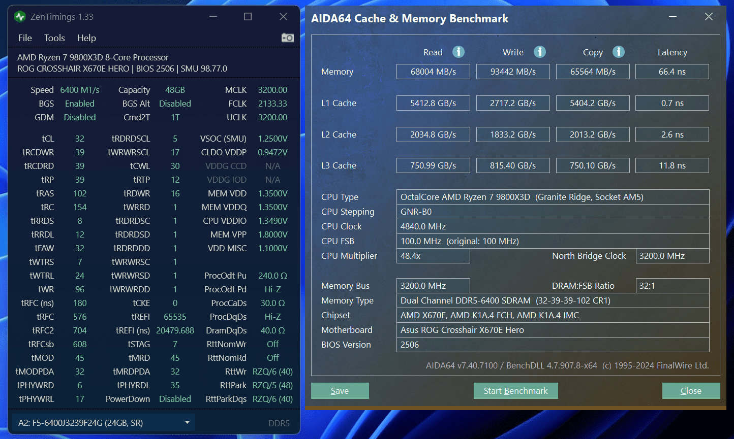 Anbei die Werte mit tRFC 576, es würde auch noch 544 laufen, aber ich lass lieber Luft.
