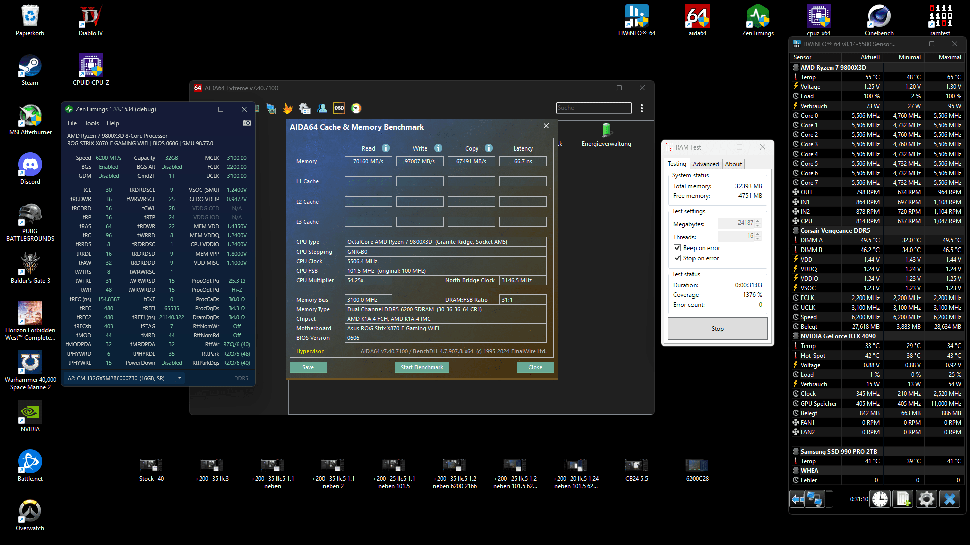 1. Du musst zuerst TM5 @1usmus 25cycle laufen lassen um frühzeitig auftretende Fehler zu lokalisieren, dann kann man weiterschauen. Mit 6400 würde ich 2133 versuchen.