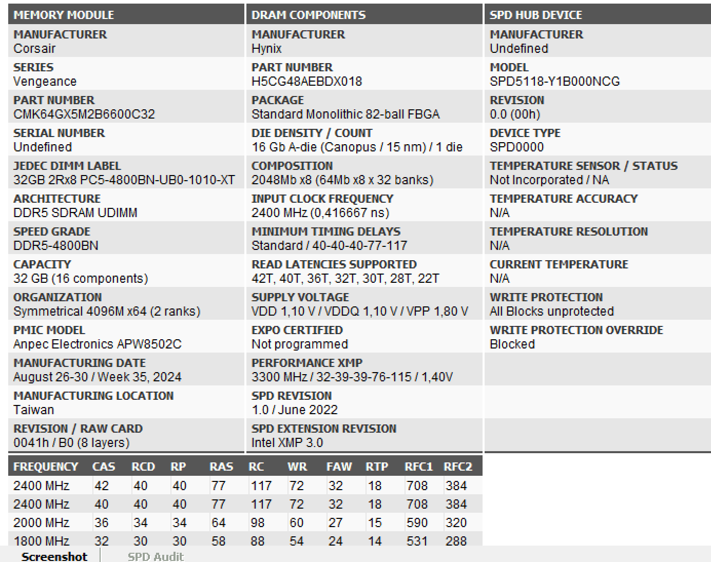 JEDEC 4800er Downbin, wahrscheinlich mit Corsair Logo. Fast alle 6000-8000er Kits sind nur noch 4800er Jedec & meistens sind die ICs mit eigenem Logo versehen.