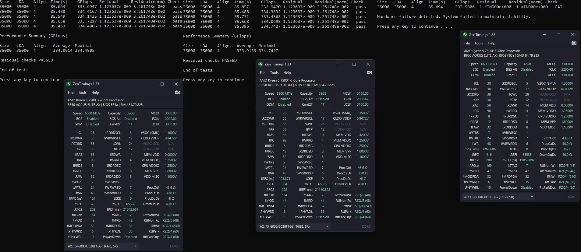 Gratulation, deine Config ist langsamer als die meisten Standard DDR5-6000 Setups dank 1/2 UCLK und instabil zugleich. Bei deiner absichtlich lächerlichen Schreibweise sollte dir auch niemand hier helfen.