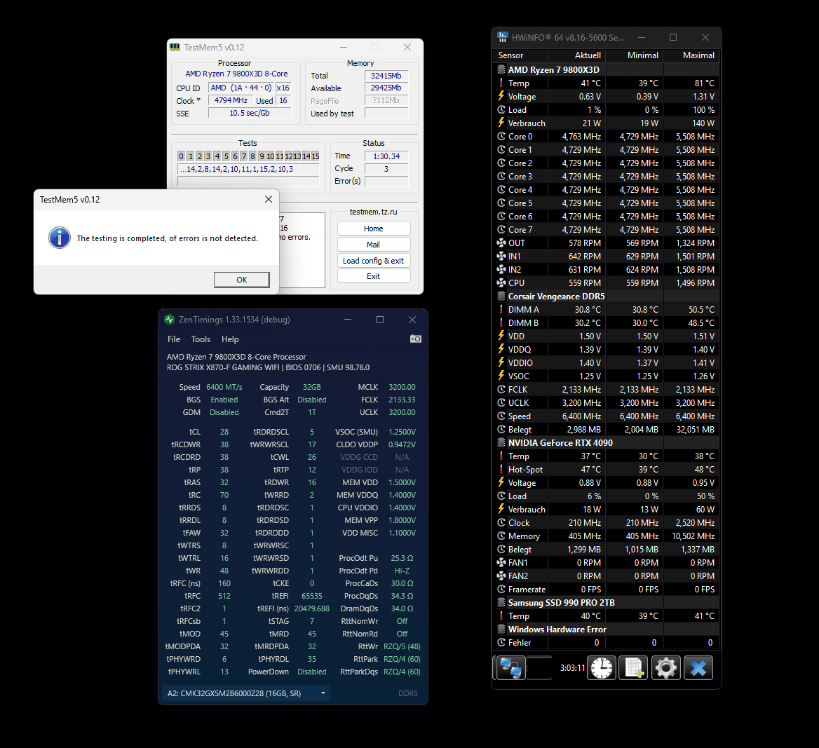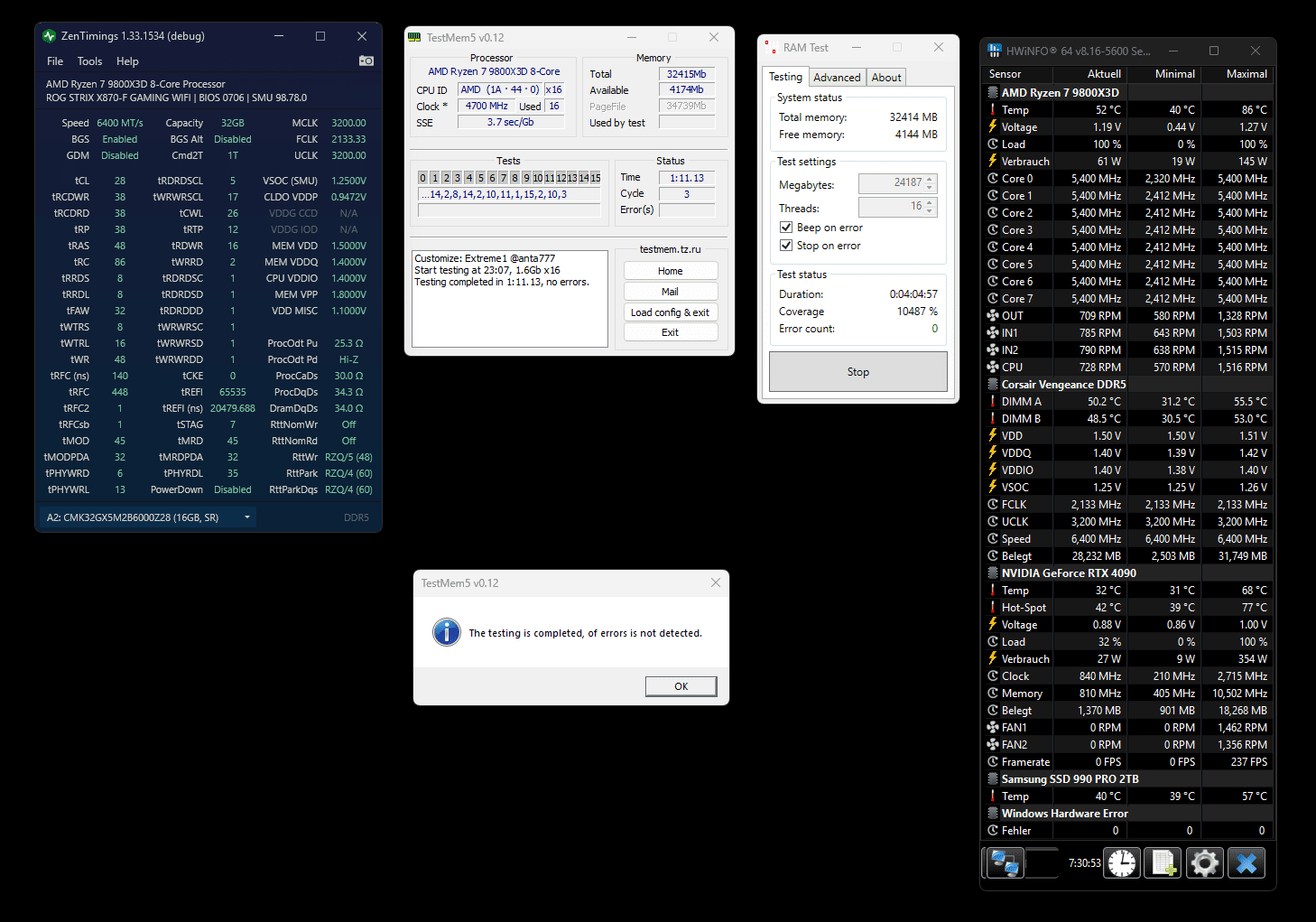 Mir ist das jetzt langsam auch zu wild, man bekommt aus dem RAM nichts rausgequtscht mit dem X3D habe ich das Gefühl. Sogar ob 6000, 6200 oder 6400 ist im Prinzip völlig wumpe, solange man die tRFC und tREFI einstellt hat man im Vergleich zu EXPO zumindest einen Gewinn, Rest AUTO bringt gefühlt einfach gar nichts weiter ebenso wie der Takt selbst. Trotzdem habe ich jetzt mal nach bestem Wissen und Gewissen was mit 6400 eingestellt und zumindest extreme@anta läufts schon mal. Aus Speiltrieb sogar noch mal mit 102 Aysnc +175 für 5.5Ghz.