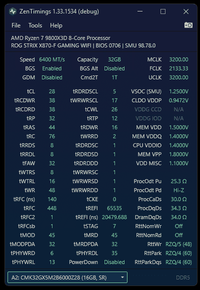 Wie Induktor schon schrieb, es macht keinen Unterschied was man einstellt gefühlt, zumindest AIDA reagiert NULL darauf und man hat sobald tRFC und tREFI da sind, Rest AUTO, quasi 1:1 die gleichen AIDA Werte wie wenn man alles anzieht mit dem 9800X3D. Ich checks auch nicht und denke das (bei AIDA) halt der X3D Cache mehr reinpfuscht/reinhaut als irgendwelche Timings.