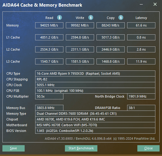 Physical RAM: 31.7 GB (38704 MB/s)