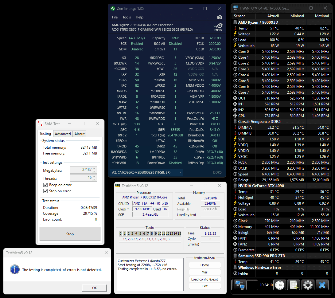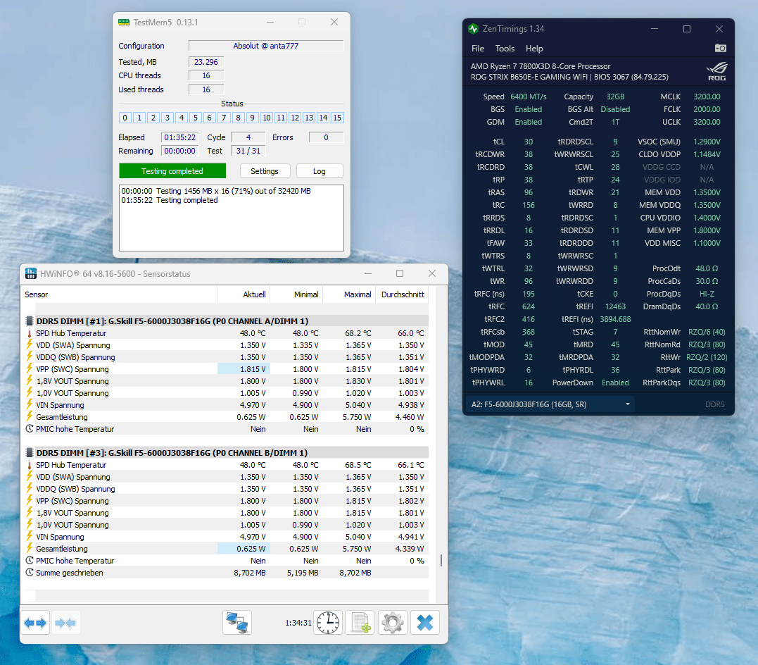 - 2x 16 GB Lexar Ares 6200 cl28 @ OCZ Kühler