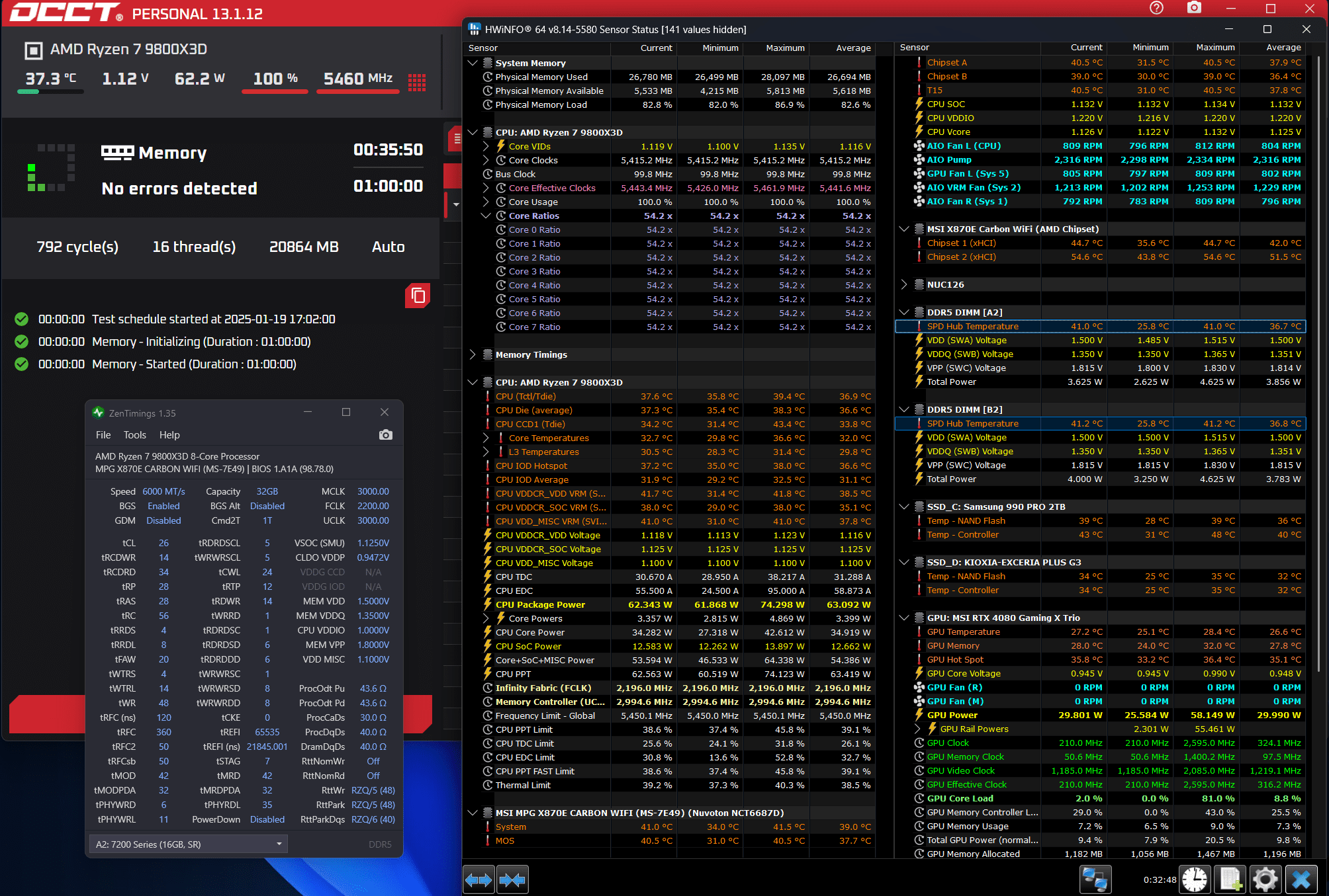 - AMD Ryzen-7 9800X3D (CO: +0/ -38)
