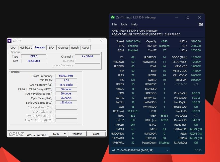 - 32GB - 6200 MT/s (CL26-12-36-30 - tRFC 120ns)
