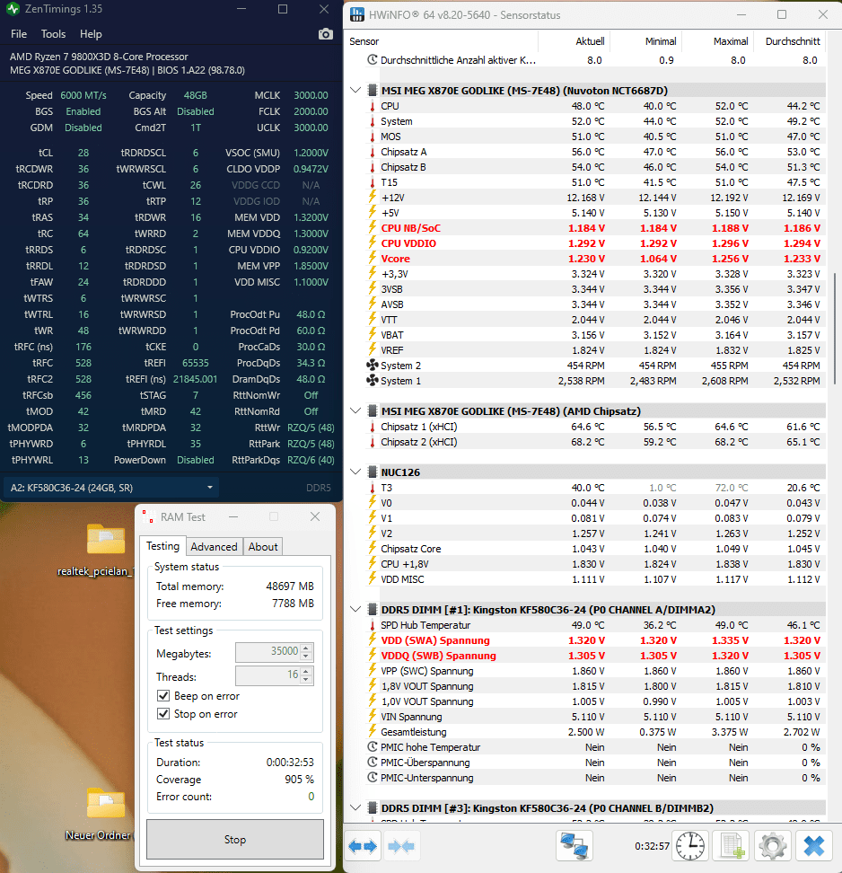 Sprich: Win11 + Game + HWinfo + MSI AB + FF mit 6-8 Tabs + Game Launcher + zweiter Monitor etc. Habe daher echt kein Usecase, wo ich wirklich mehr als 32GB RAM brauche.