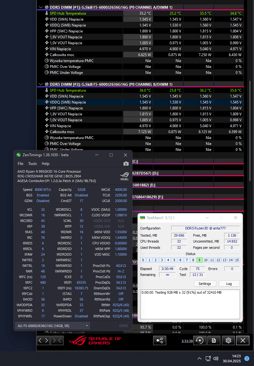 Karhu ist ein Speichertest, was super ist um eine reale VDimm auszuloten bis Temp X. Das ist aber kein System Stabilitätstest.