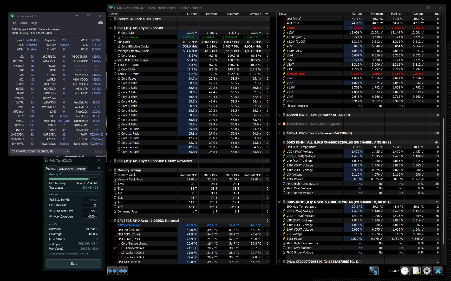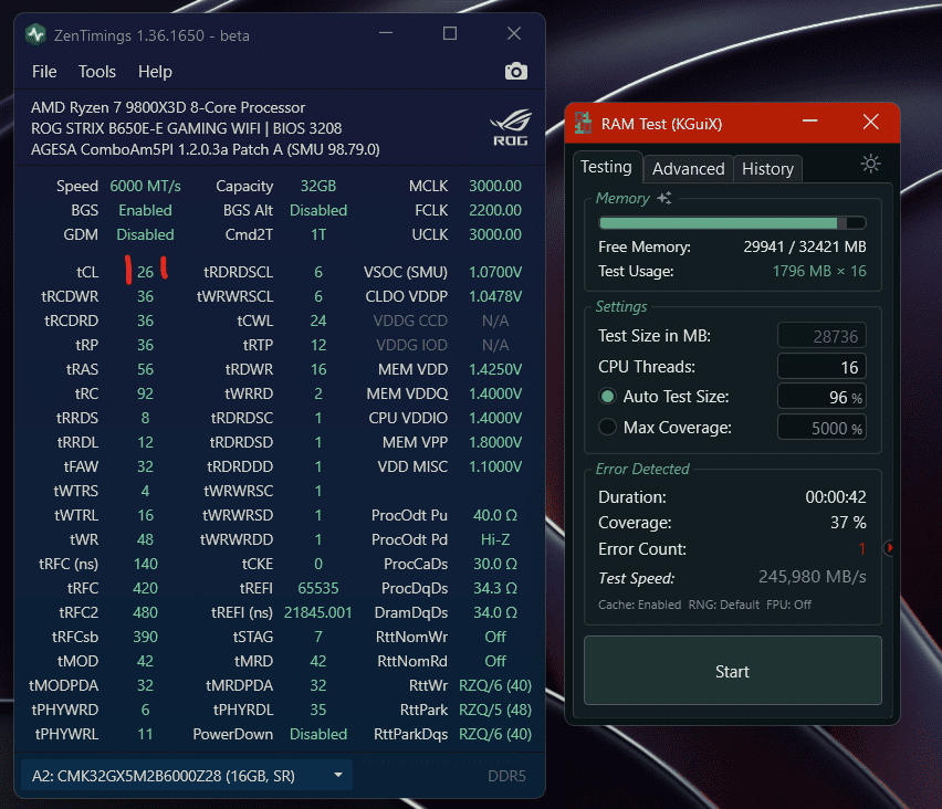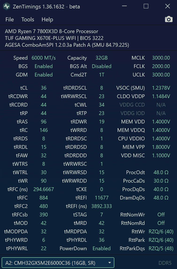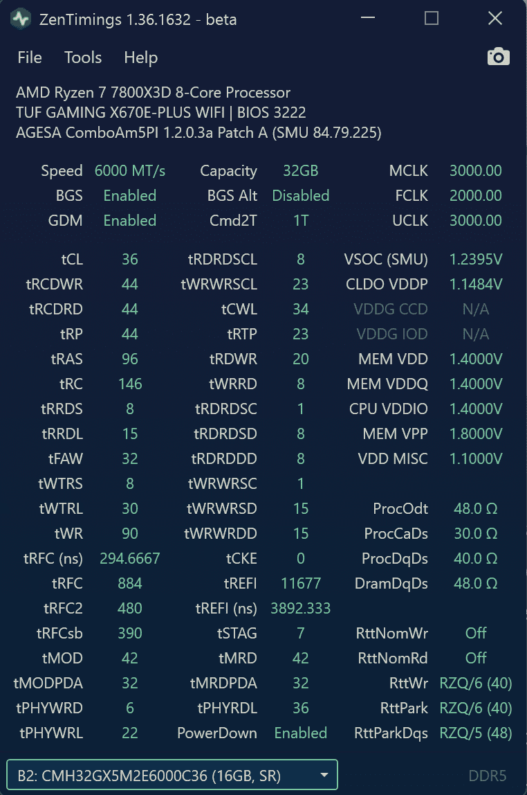 - 32GB - 6200 MT/s (CL26-12-36-30 - tRFC 120ns)