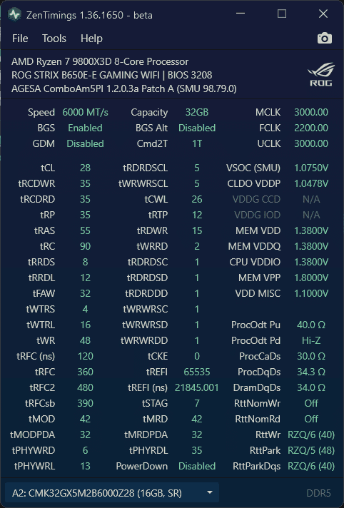 Was genau kann ich jetzt noch machen, bevor ich die Spannungen runternehme? 1/2/0 Nitro will nicht und ich bin gerade dabei die Primären tRCDWR, tRCDRD und tRP auszuloten, wobei tRCDRD wohl nicht tiefer geht. Muss ich da irgendwas beachten, oder einfach Karhu an und eine Nacht drüber schlafen? Ich hab die Timings jetzt ohne großes wissen mal von wem anders eingesetz, das war 26-36-36-36-96. Macht tRAS überhaupt irgendwas bei AM5? Buildzoid hatte da doch mal ein Video zu.