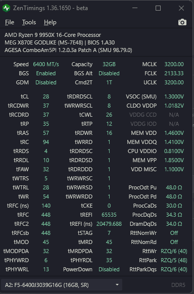 Nur mal so aus Interesse, welche Nitro Settings legt er mit Auto Settings an? Sieht du ebenfalls in ZenTimings, über den Reiter Systeminfo