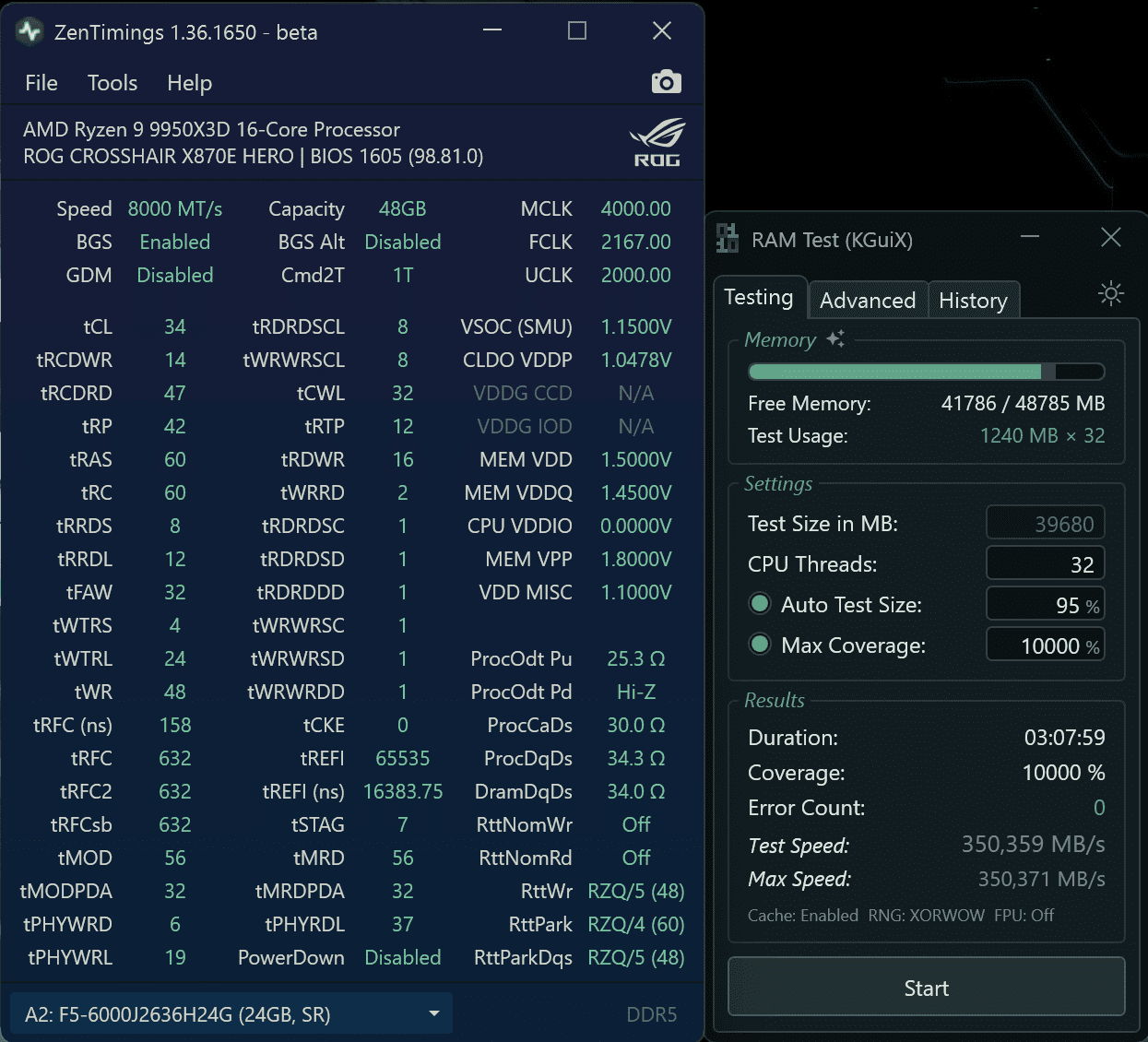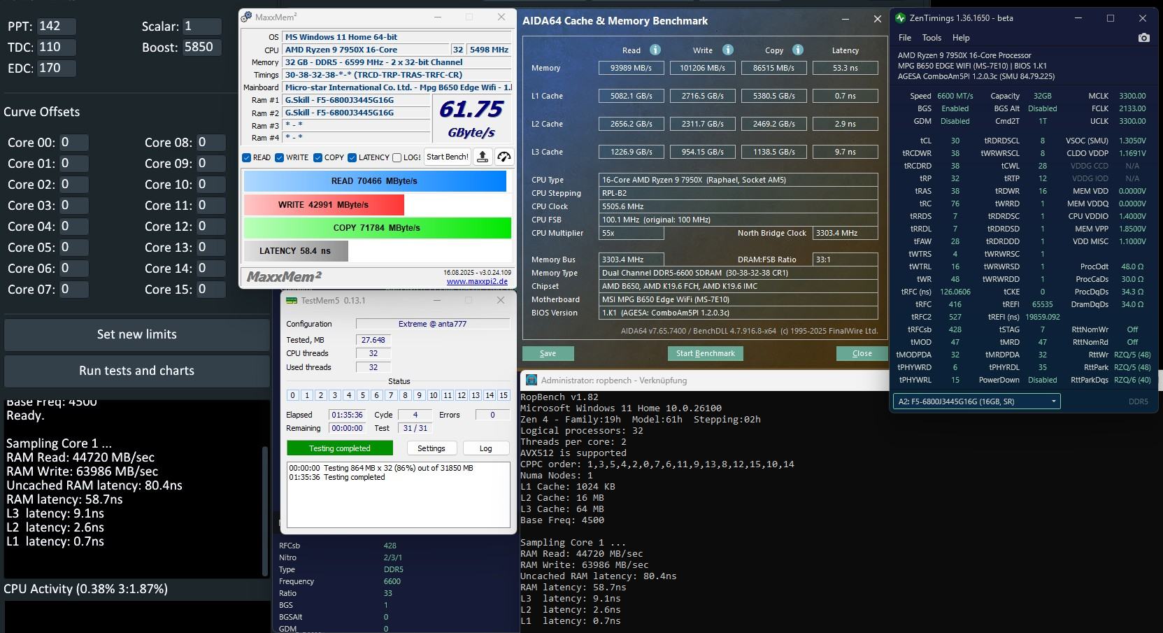 Bin nun generell fast durch mit dem RAM - TCL 36 oder gar 34 / 8000 auch kein Denken dran - zumindest nicht mit trfc 650 (das Taichi konnte mit ansonsten gleicher Kombi tcl 36 - aber nicht mit diesen trfc. Auch da habe ich aufgehört an tcl 36 oder tiefer zu feilen, nur um trfc dann zu erhöhen. Alles hinsichtlich mit der gezeigten Spannung. So wie´s ist, ist das ein gutes Mittelmaß. Vlt. KArhu noch ein wenig länger rennen lassen...
