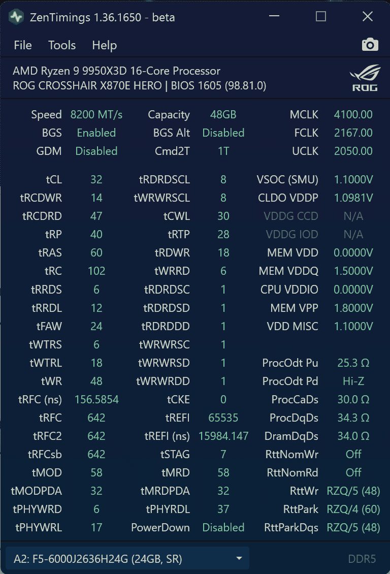 - 64GB G.SKill Trident Z5 Neo 6000J2836G32G@6200