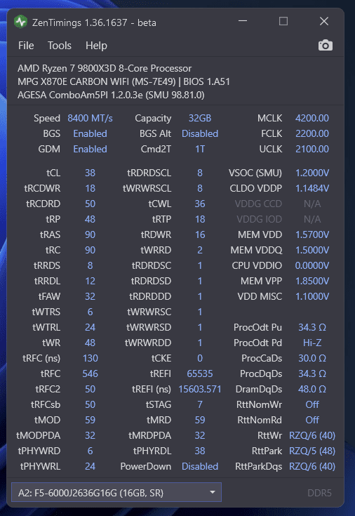 Mein aktuelles System (Links im Profil) hat ebenso nur mittelmäßigen RAM (CMH32GX5M2E6000C36 - whs. Samsung B-Die) und eine X3D CPU die es noch "weniger wichtig" macht.
