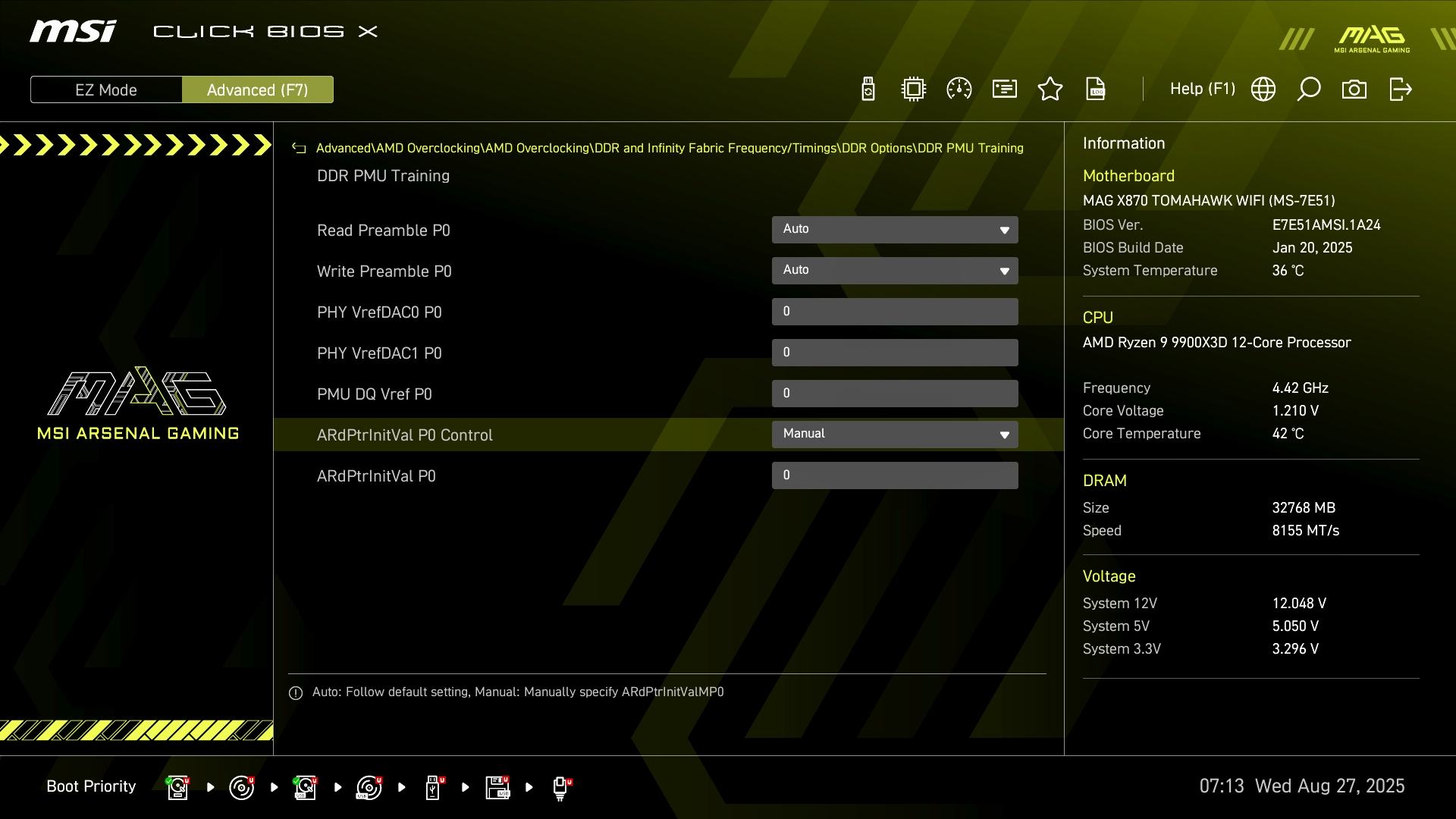 8155C36 bclk 100.6875 GearOFF A/B 37/37 synced VDD=Q 1.65v SoC 1.120 Misc Auto Vddp 1.100 Vddio 1.48 Vddgs CCD=IOD 1.050v LLC level3 TjMax 95°