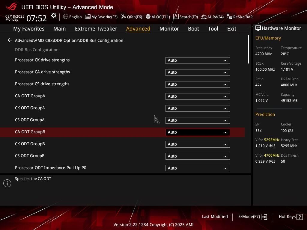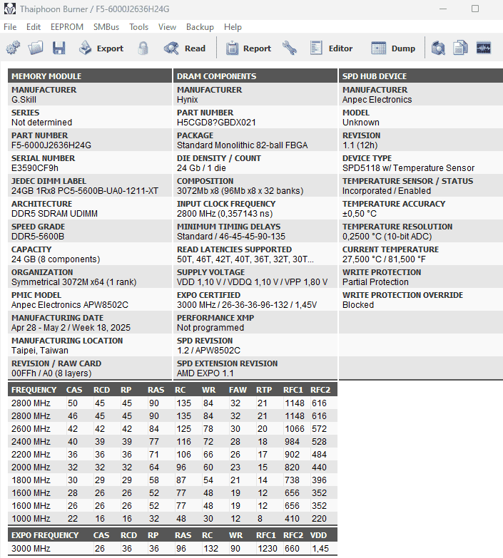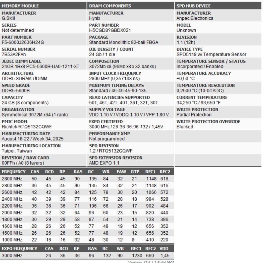- 48GB G.Skill F5-6000J2636H24G @8000