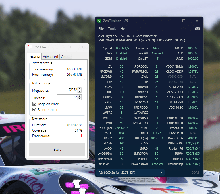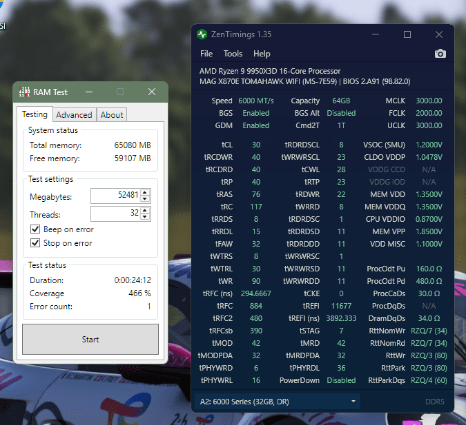 - 64GB G.SKill Trident Z5 Neo 6000J2836G32G@6200