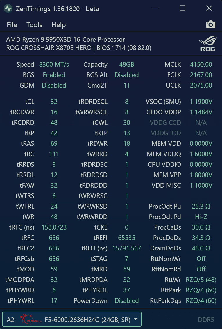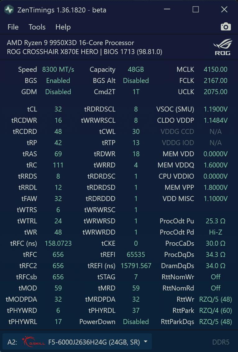 Bisher habe ich damit weder viel Zeit aufwenden müssen um gewisse Werte/Änderungen auf ihren Einfluss hin zu testen, noch irgendwie spät noch mal was gehabt. Spät ist immer Temperatur. Mit WaKü bzw. guter Kühlung ist das relativ easy, weil entweder kracht es wegen schiefer Werte relativ schnell (innerhalb von 5 Minuten) oder dann eben so gut wie gar nicht mehr. Da ist AMD mit DDR5 echt esaiest RAM OC ever. Bei Intel war das nicht so einfach…