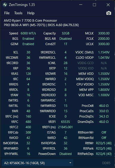 - 64GB G.SKill Trident Z5 Neo 6000J2836G32G@6200