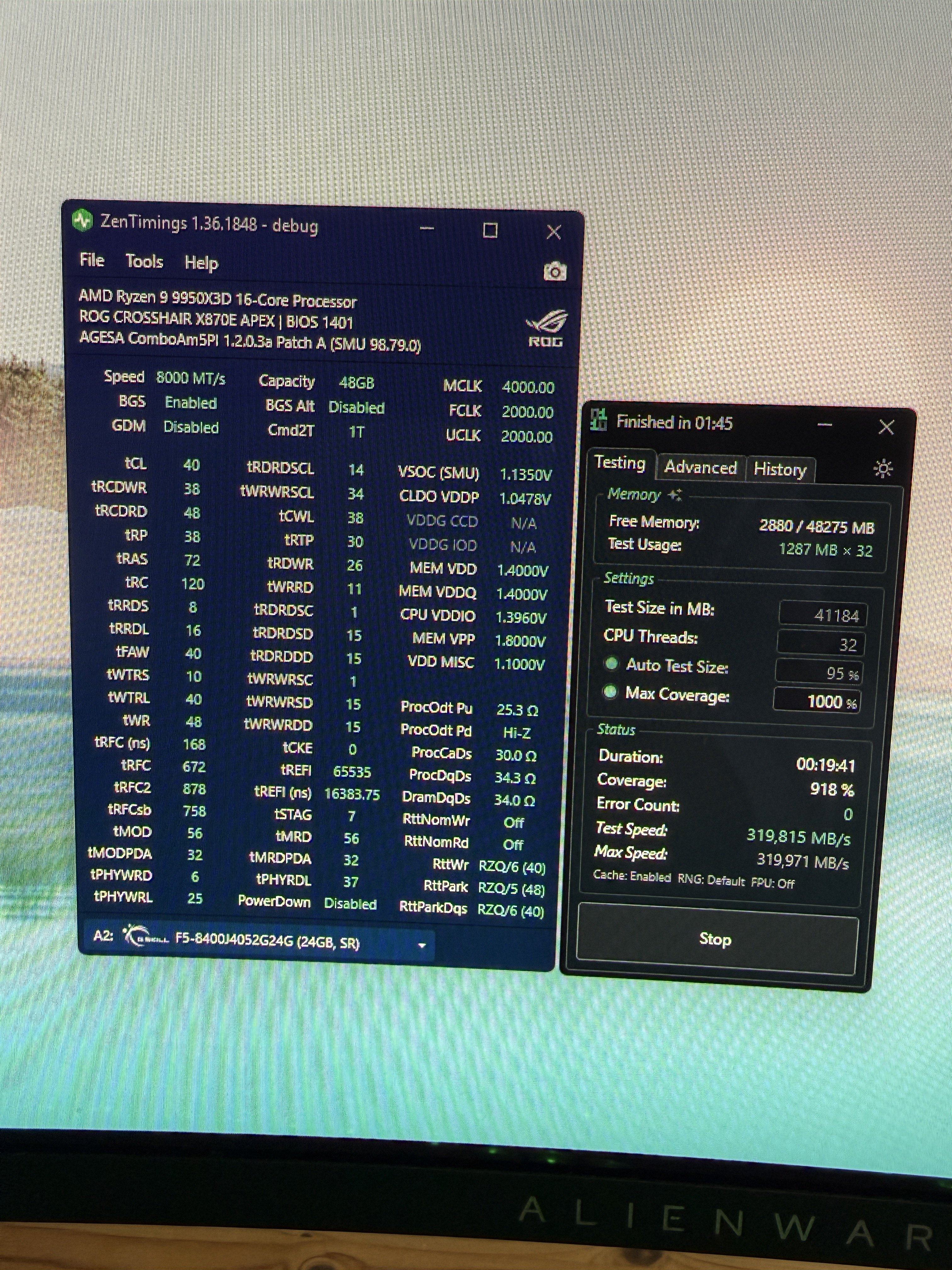 - G.Skill Trident Z5 RGB 48GB DDR5 @ 8000 CL36