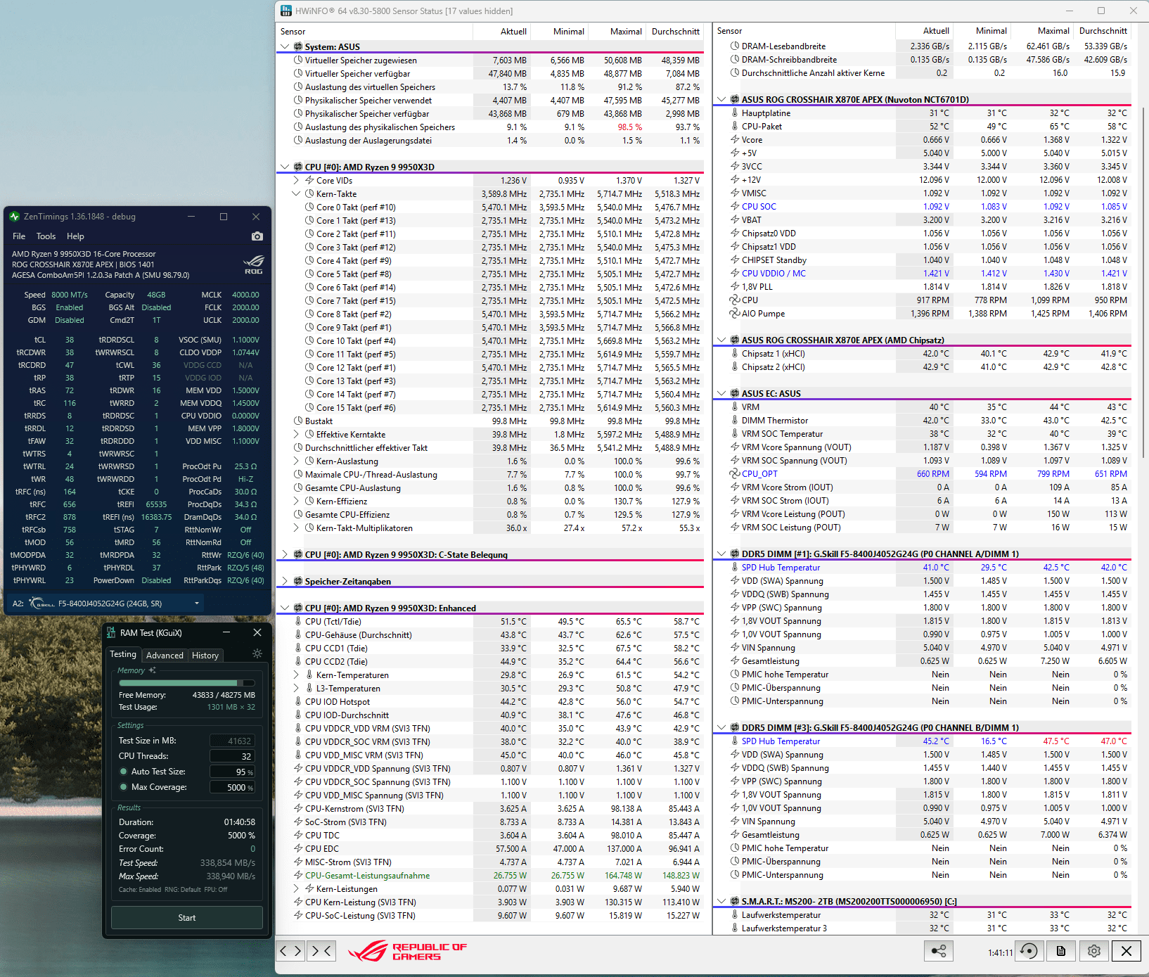 es ist ja nicht gekracht... aber selbst mit einem 120er oben drauf blieben die Temps im offenen Aufbau nur knapp unter 50°. Was soll das erst im Gehäuse werden, wenn unten drunter die 5090 heizt?1.5v sollten auch 24/7 ohne Kühlung laufen, ist ja jetzt nicht so viel mehr wie die 1.45v mit denen Kits heute schon ohne Fan ausgeliefert werden. Das liegt an den Settings wenn es bei Temp kracht