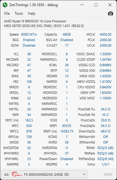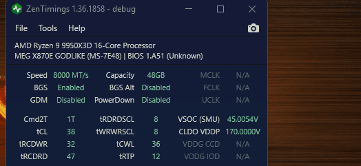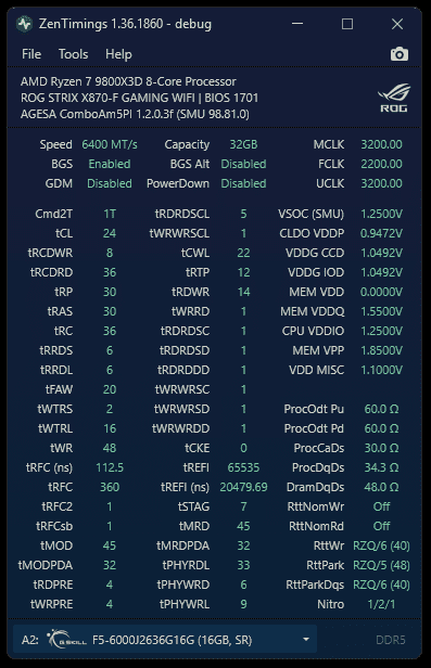 - 32GB - 6200 MT/s (CL26-12-36-30 - tRFC 120ns)