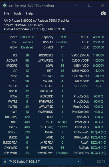 Konnte doch noch ein anscheinend stabiles 2:1 Setting finden, 8000MT/s CL34.