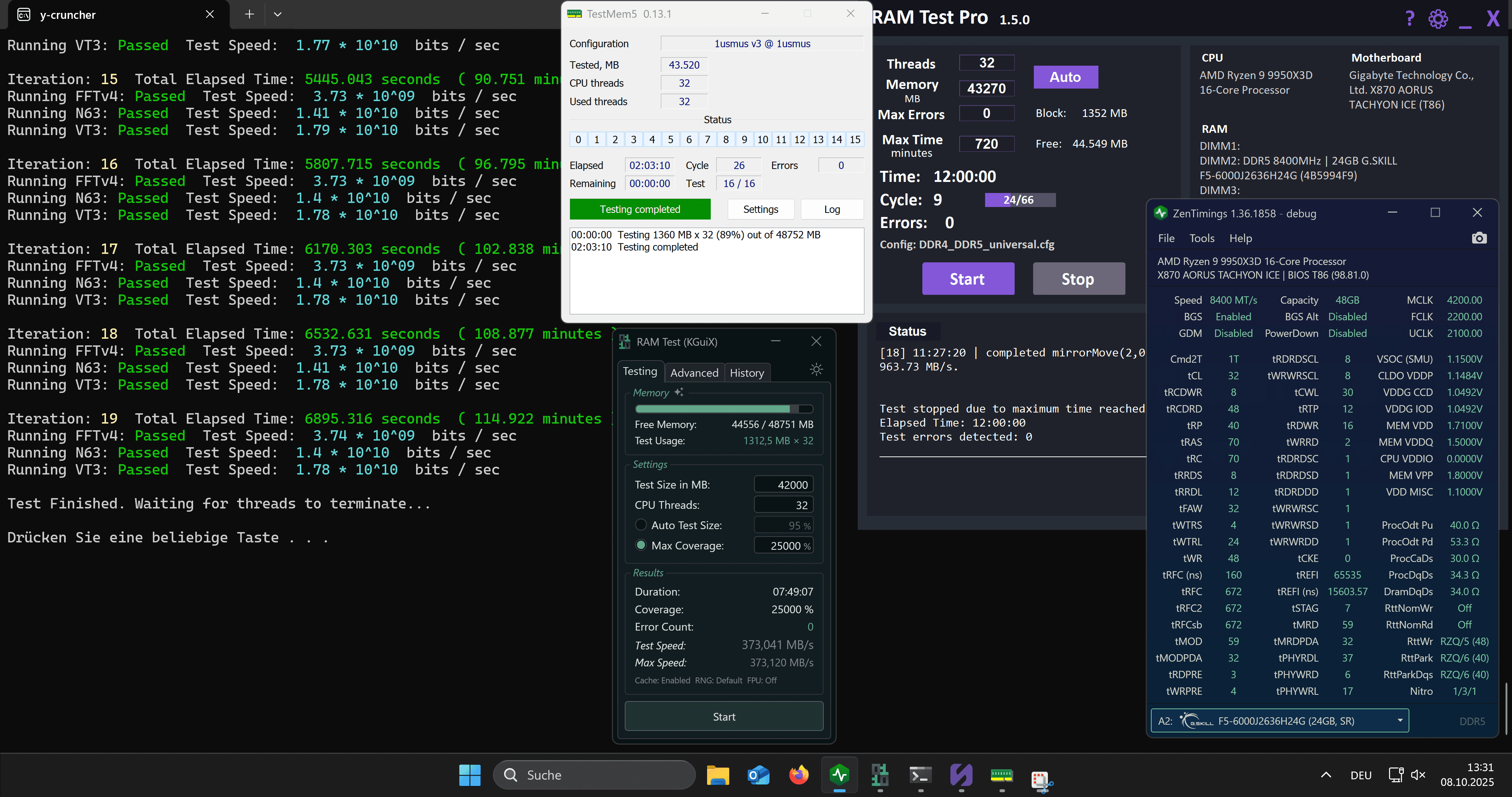 Hält schon einmal 1,5h TM5 und 15000% Karhu mit Output 349MB/s. Weiter beobachten und testen.