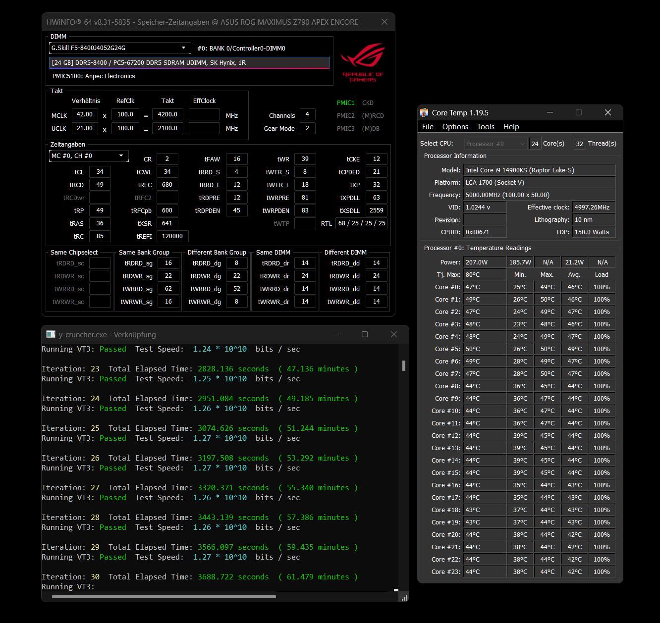 , vor allem auch diese phantastische Excel RAM Datei geholfen, deshalb war ich relativ schnell fertig. UND ich weiß bis heute nicht warum das Taichi mit denselben 24Gb Sticks über 1,45VDD kann (CL36), das Godlike aber nicht - vlt. bin ich aber auch nur zu blöd. So wie es jetzt schon wochenlang läuft bin ich aber auch zufrieden. Ich habe die Werte des Taichi vor geraumer Zeit mal versucht, soweit ich noch aus´m Kopf weiss, warens 8000 CL36 aber mit trfc 706 ; VDD 1,47 VDDQ ? VDDIO + VSOC ähnlich wie jetzt ; stdrd vddg vddp.@Neon Knights
