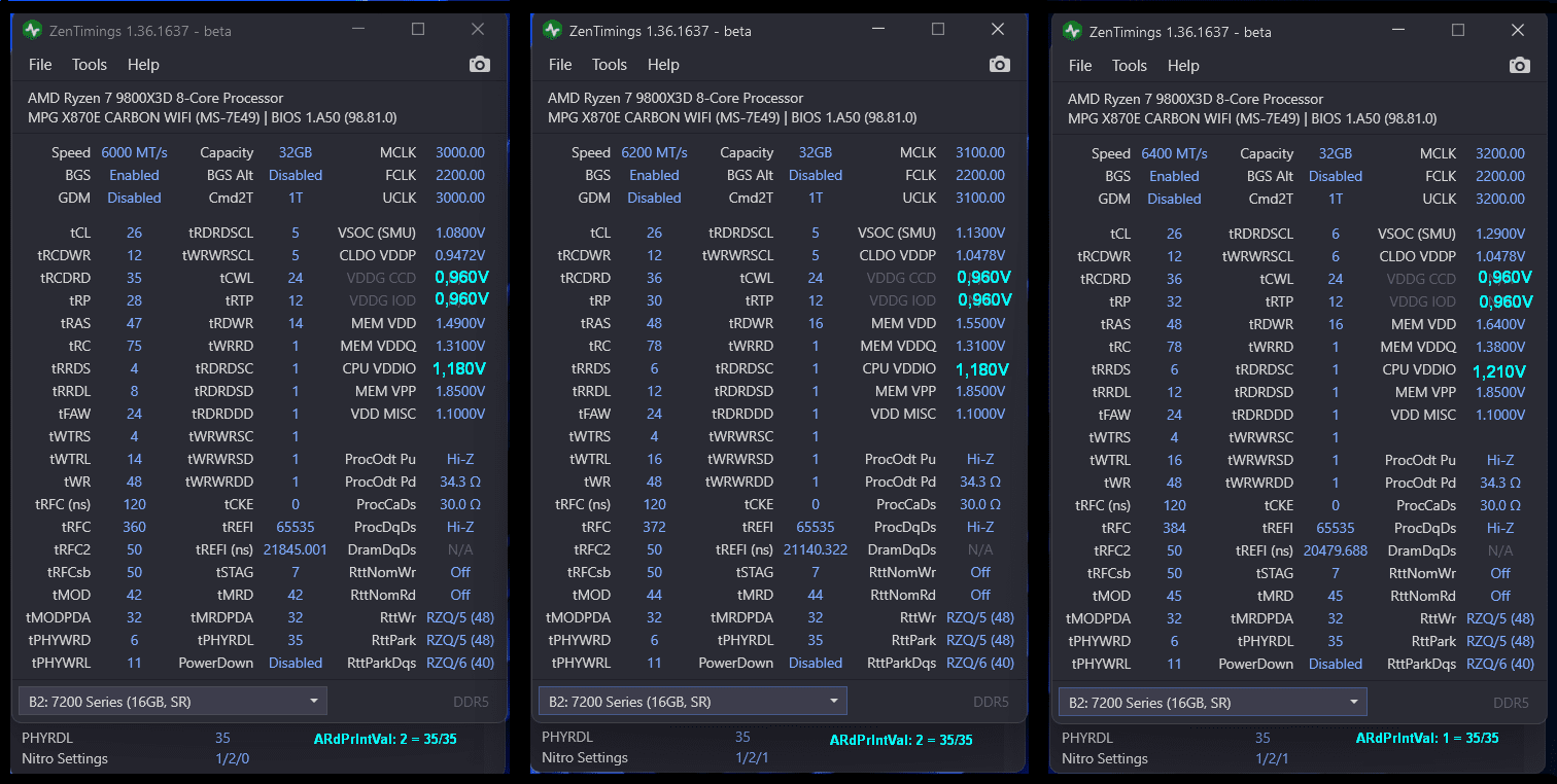 Erstmal würde ich die SOC herunterschrauben, 1,25V ist schon echt viel für 6000MT/s. (vermutlich irgendwas zwischen 0,9V und 1,2V, aber da gibt es auch Ausreißer in beide Richtungen)
